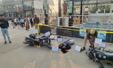 आजमगढ़: यातायात माह – 2025 के अंतर्गत वरिष्ठ पुलिस अधीक्षक डॉ० अनिल कुमार, अपर पुलिस अधीक्षक (यातायात) विवेक त्रिपाठी तथा क्षेत्राधिकारी यातायात शुभम तोदी के निर्देशन में अग्रसेन चौराहे पर दुर्घटना का संजीव प्रदर्शन (Live Demonstration) कर मोटरसाइकिल चालकों को हेलमेट के अनिवार्य प्रयोग, सड़क सुरक्षा उपायों तथा यातायात नियमों के पालन के लिए जागरूक किया गया। कार्यक्रम में उपस्थित यातायात पुलिस टीम द्वारा सड़क दुर्घटनाओं से बचाव हेतु विस्तृत जानकारी दी गई एवं आमजन को जिम्मेदार यातायात व्यवहार अपनाने के लिए प्रेरित किया गया।