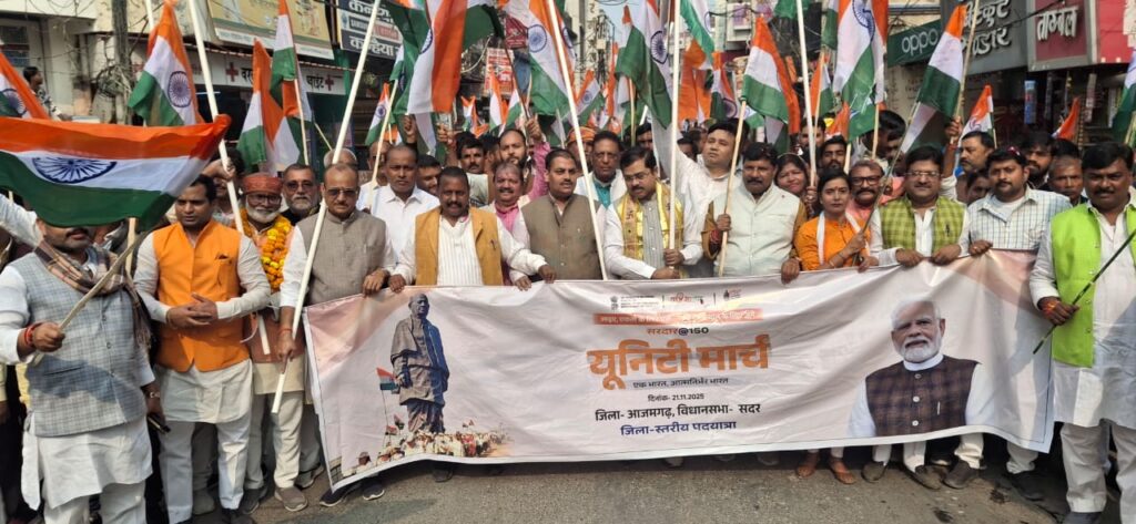 इस अवसर पर मुख्य अतिथि प्रदेश महामंत्री संजय राय ने कहा कि लौह पुरुष सरदार वल्लभभाई पटेल की जयंती के 150 वर्ष 31 अक्टूबर को पूर्ण हुए थे। जिस कांग्रेस के सदस्य के रूप में सरदार पटेल ने आजादी के आंदोलन में अपना पूरा जीवन लगाया। 1947 में देश की आजादी के बाद कांग्रेस की सरकार बनी । उस समय भारत 562 छोटी बड़ी रियासतों में बाट हुआ था। उन रियासतों को सरदार पटेल ने भारत में मिलाकर भारत को एकता के सूत्र में बांधने का महान कार्य किया। लेकिन उनको जो सम्मान मिलना चाहिए था कांग्रेस ने अपने 55 साल के कार्यकाल में कभी नहीं दिया। लौह पुरुष सरदार बल्लभ भाई पटेल को उनका उचित सम्मान देने का कार्य भारत माता के सपूत पूर्व प्रधानमंत्री अटल बिहारी वाजपेई और प्रधानमंत्री नरेंद्र मोदी ने किया। प्रधानमंत्री नरेंद्र मोदी के नेतृत्व में यह निर्णय लिया गया कि सरदार पटेल को उनका सम्मान दिलाने के लिए विभिन्न कार्यक्रमों का आयोजन पूरे देश में किया जाएगा। बहुत से कार्यक्रम हो भी चुके हैं उसी क्रम में आज आजमगढ़ सदर विधानसभा में यह एकता पदयात्रा का कार्यक्रम किया जा रहा है। लौह पुरुष सरदार वल्लभभाई पटेल की 150वीं जयंती को समर्पित इस राष्ट्रव्यापी कार्यक्रम का उद्देश्य युवाओं में एकता, देशभक्ति और कर्तव्य भावना को जागृत करना है। सरदार पटेल ने जिस तरह बिखरे हुए भारत को एक भारत बनाया, उसी भावना को यह पदयात्रा आगे बढा रही है ।इस अभियान के जरिए युवाओं को एक भारत और आत्मनिर्भर भारत के आदर्श अपनाने के लिए प्रेरित किया गया।
