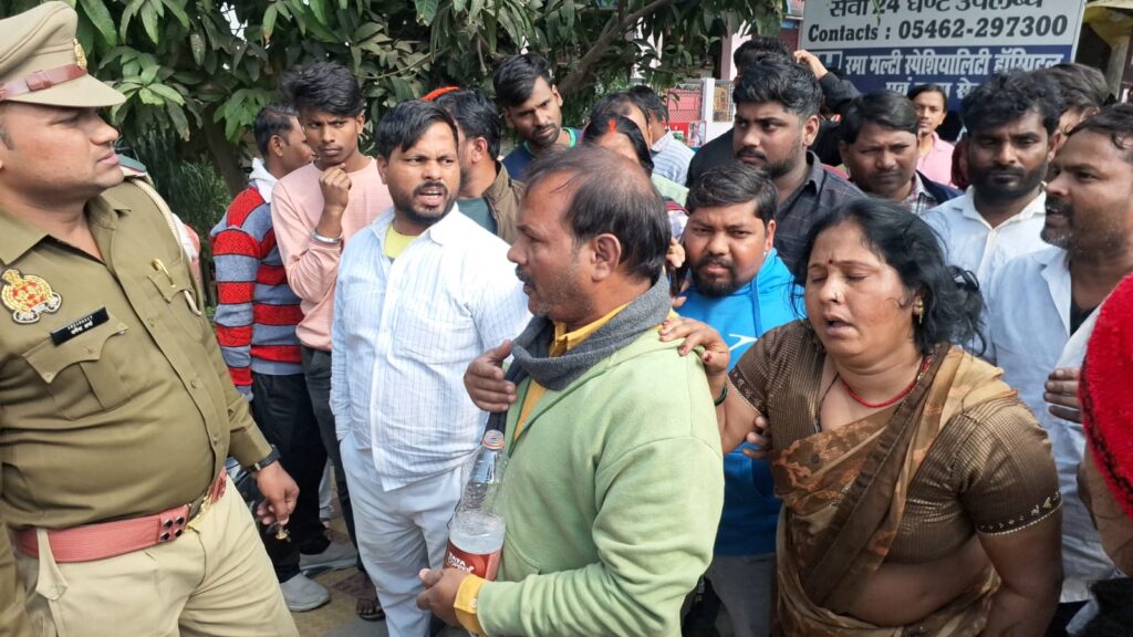 आजमगढ़ के सिधारी थाना क्षेत्र स्थित प्रतिष्ठित अस्पताल में गुरुवार को दिन में उस समय बवाल हो गया जब परिजनों ने अपने मरीज को इलाज नहीं किए जाने का आरोप लगाकर छुट्टी करने की मांग की। परिजनों के अनुसार 4 वर्षीय बच्चा बुधवार को दिन में चोटिल हो गया था। कलाई के पास उसको चोट लग गई थी।इमरजेंसी में इलाज के लिए वह लोग नरौली स्थित प्रतिष्ठित अस्पताल पर आए थे। मामूली मरहम पट्टी कर डॉक्टर ने बताया कि इसका ऑपरेशन करना होगा। नस में दिक्कत है। पीड़ित बच्चे को भर्ती कर लिया गया लेकिन कहा गया कि शाम को ऑपरेशन होगा। बुधवार की शाम को भी ऑपरेशन नहीं हुआ। डॉक्टर ने और लोगों का ऑपरेशन किया, लेकिन पीड़ित बच्चे को नहीं छुए। बाद में कहा गया कि सुबह ऑपरेशन होगा। गुरुवार सुबह भी डॉक्टर आए लेकिन बच्चों के पास आए बिना वह चले गए। इस पर परिजन परेशान हो गए और छुट्टी देने की बात करने लगे। कहे कि जब ऑपरेशन नहीं करना है तो फिर क्यों इस तरीके से परेशान किया जा रहा है। मामला बढ़ने पर आरोप है कि अस्पताल के वरिष्ठ चिकित्सक ने पहले मारपीट की। फिर स्टाफ को ललकार कर मारने को कहा गया। महिला समेत सभी पीड़ित परिजनों को कमरे में बंद कर उनके साथ मारपीट का आरोप है। पीड़ित परिजन किसी प्रकार से निकल कर सिधारी थाने पहुंचे और थाने पर तहरीर दिए। कार्रवाई की गुहार लगाई।
