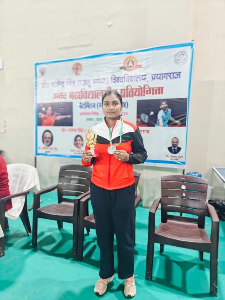 जिला बैडमिंटन संघ आजमगढ़ की खिलाड़ी अंकिता यादव जो कि सरस्वती विद्या मंदिर साइंस & टेक्नोलॉजी पी0जी0 कॉलेज लालगंज प्रतापगढ़ में मास्टर ऑफ फिजिकल एजुकेशन की छात्रा है 10 से 14 दिसंबर 2025 तक सिटी यूनिवर्सिटी, लुधियाना, पंजाब मे आयोजित नॉर्थ जोन अंतर विश्वविद्यालय प्रतियोगिता में प्रोफेसर राजेन्द्र सिंह (रज्जू भय्या) विश्वविद्यालय, प्रयागराज का प्रतिनिधित्व करेगी l