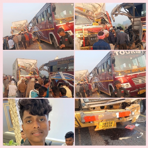 आजमगढ़। पूर्वांचल एक्सप्रेस-वे के किलोमीटर संख्या 207 पर समशाबाद गांव के पास सोमवार सुबह करीब सात बजे एक भीषण सड़क हादसा हो गया। तेज रफ्तार कंटेनर ने सड़क किनारे खड़ी बस में पीछे से जोरदार टक्कर मार दी। टक्कर इतनी भीषण थी कि बस डिवाइडर से टकराते हुए करीब 50 मीटर तक घिसटती चली गई। हादसे में बस में सवार आधा दर्जन से अधिक यात्री गंभीर रूप से घायल हो गए, जबकि एक यात्री की मौके पर ही मौत हो गई। मृतक की पहचान दीपक चौहान 17 पुत्र रामसूरत चौहान मुबारकपुर थाना अंतर्गत लाडो बलिया आजमगढ़ के रूप मे हुई है मौके पर पहुंची यूपीडा टीम ने बचाव कार्य शुरू कर दिया था वहीं मौके पर पहुंचे थानाध्यक्ष अहरौला अमित कुमार मिश्रा के द्वारा शव को अपनी सुपुर्दगी में लेकर घायलों को तत्काल सीएचसी अहरौला में उपचार के लिए भिजवाया जहां घायलों के प्राथमिक उपचार के बाद चार लोगों को गंभीर स्थिति में जिला अस्पताल के लिए रेफर कर दिया गया है। बताया गया कि हादसे के समय मृतक दीपक बस से उतरकर लघुशंका कर रहे थे, तभी कंटेनर की चपेट में आ गए, जिससे उनकी मौके पर ही मौत हो गई। दीपक तीन बहनों का इकलौता भाई था, जिसकी मौत से परिजनों में कोहराम मचा हुआ है। बताया गया कि बस राजस्थान से यात्रियों को लेकर बलिया की तरफ जा रही थी
