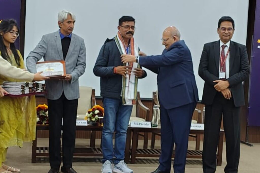 आजमगढ़: नई दिल्ली के भारतीय कृषि अनुसंधान संस्थान के सभागार में पूर्व प्रधानमंत्री चौधरी चरण सिंह की जयंती पर राष्ट्रीय किसान दिवस के अवसर पर दो दिवसीय आईएआरआई नवोन्मेषी किसान कॉन्क्लेव में बुधवार को जनपद के अजमतगढ़ के कोंठा के निवासी प्रगतिशील किसान वंशगोपाल सिंह को सम्मानित किया गया। 23 और 24 दिसंबर को कार्यक्रम का आयोजन हुआ। कृषकों के नवाचारों और तकनीकियों से संबंधित परिचर्चा में प्रतिभागिता को लेकर वंशगोपाल को पद्मभूषण राजेन्द्र सिंह परोदा ने प्रमाणपत्र सौंपा। इस अवसर पर कृषि निदेशक डॉ सीएच श्रीनिवास राव, संयुक्त निदेशक प्रसार डॉ रविंद्र नाथ पडारिया, प्रभारी कैटेट डॉ अनिल कुमार सिंह समेत अन्य लोग रहे।