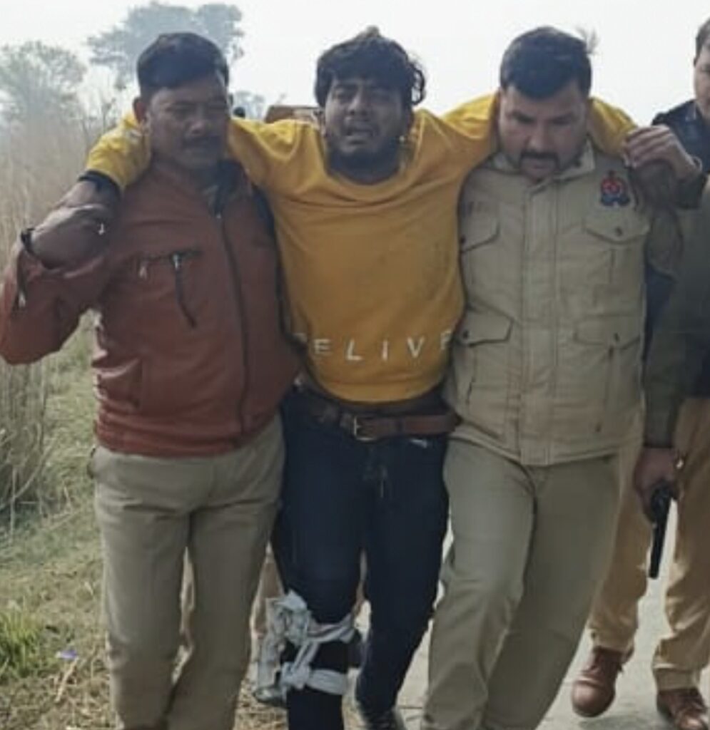 आजमगढ़: थाना मेंहनाजपुर के थाना प्रभारी उ0नि0 मनीष पाल पुलिस टीम के साथ क्षेत्र में भ्रमणशील थे। इसी दौरान मुखबिर द्वारा सूचना प्राप्त हुई कि 31 दिसंबर को थाना क्षेत्र में हुई हत्या की घटना में वांछित अभियुक्त ऊचहुआ से मानिकपुर की ओर जा रहा है। प्राप्त सूचना के आधार पर थाना प्रभारी द्वारा तत्काल पुलिस टीम के साथ मानिकपुर मोड़ से 200 मीटर पहले पुलिया के पास घेराबंदी की गई। कुछ समय पश्चात ऊचहुआ की ओर से एक व्यक्ति आता हुआ दिखाई दिया, जिसे पुलिस बल द्वारा रुकने का इशारा किया गया। पुलिस को देखकर अभियुक्त द्वारा भागने का प्रयास किया गया, किन्तु अभियुक्त द्वारा स्वयं को घिरता हुआ देख पुलिस टीम पर जान से मारने की नीयत से फायर किया गया। पुलिस द्वारा आत्मरक्षार्थ की गई जवाबी फायरिंग में अभियुक्त के दाहिने पैर में गोली लग गई। घायल अभियुक्त की पहचान वरुण यादव उर्फ शेरू यादव पुत्र अवधराज यादव, निवासी ऊचहुआ, थाना चन्दवक, जनपद जौनपुर के रूप में की गयी। जो थाना क्षेत्र में 31 दिसंबर की देर रात को हुई हत्या के मामले में वांछित अभियुक्त था। घायल अभियुक्त को उपचार हेतु अस्पताल भिजवाया गया है। अभियुक्त के कब्जे से एक तमंचा .315 बोर, एक जिन्दा कारतूस .315 बोर, एक खोखा कारतूस .315 बोर बरामद हुआ। अभियुक्त वरूण यादव द्वारा पूछताछ में बताया गया कि रंजिशन मैं अपने भाई अरूण यादव उर्फ वकील यादव पुत्र अवधराज यादव तथा साथी रवि यादव पुत्र स्व0 उदयराज यादव व लालू यादव पुत्र प्यारेलाल यादव समस्त निवासीगण उचहुआ, थाना चन्दवक, जनपद जौनपुर के साथ मिलकर मारूकामाता मंदिर के पास अखिलेश सोनकर पुत्र संतोष सोनकर को मारापीटा और उसे घायल अवस्था में वहीं छोड़कर भाग गये थे, जिसकी बाद में मृत्यु हो गयी थी। दिनांक 31.12.2025 को आवेदक शुभम सोनकर पुत्र उदयभान सोनकर, निवासी दरियापुर नेवादा, थाना मेंहनाजपुर, द्वारा प्रार्थना पत्र दिया गया कि मेरे चाचा के लड़के अखिलेश सोनकर पुत्र संतोष सोनकर, उम्र 24 वर्ष को कुछ लोगों द्वारा मारूकामाता मंदिर के पास सिर पर डण्डे से प्रहार किया गया, जिससे मेरा भाई गंभीर रूप से घायल हो गया जिसे इलाज के लिए ले जाते समय रास्ते में उसकी मृत्यु हो गयी। प्राप्त प्रार्थना पत्र के आधार पर थाना स्थानीय पर धारा 103(1) बीएनएस का अभियोग पंजीकृत किया गया।