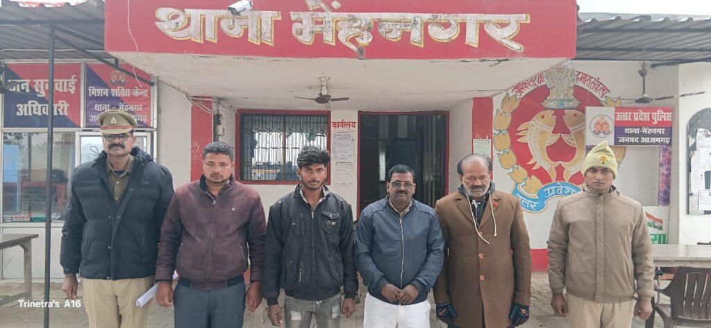 उक्त घटना के संबंध में थाना मेंहनगर पर मु0अ0सं0 07/2026, धारा 3(5)/110/352/351(3) बीएनएस के अंतर्गत अभियोग पंजीकृत किया गया, जिसकी विवेचना प्रचलित है। उपनिरीक्षक उमेश सिंह मय हमराह हे0का0 अनिल कुमार द्वारा मुकदमा उपरोक्त से संबंधित वांछित अभियुक्त राजनेत चौहान पुत्र फूलबदन चौहान, निवासी ग्राम जाफरपुर, थाना मेंहनगर,को उसके घर से गिरफ्तार कर विधिक कार्यवाही करते हुए चालान न्यायालय भेजा गया। उपनिरीक्षक आदिल खान हमराह द्वारा मुकदमा उपरोक्त से संबंधित वांछित अभियुक्तों 1.राकेश चौहान पुत्र बलिराम चौहान उम्र 31 वर्ष, 2.अम्बुज चौहान पुत्र सुभाष चौहान उम्र 22 वर्ष 3.फूलबदन चौहान पुत्र छोहाड़ा चौहान उम्र 59 वर्ष, 4.छोटेलाल चौहान पुत्र खुन्नु चौहान उम्र 45 वर्ष निवासीगण जाफरपुर थाना मेंहनगर को उनके घर से गिरफ्तार कर विधिक कार्यवाही करते हुए चालान न्यायालय भेजा गया।