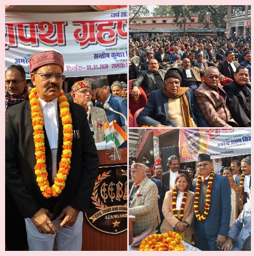 आजमगढ़: दीवानी बार एसोसिएशन के नवनिर्वाचित पदाधिकारियों को शुक्रवार को शपथ दिलाई गई। इस समारोह में मुख्य अतिथि के तौर पर उत्तर प्रदेश बार कौंसिल के पूर्व अध्यक्ष अब सदस्य अमरेन्द्र प्रताप सिंह, विशिष्ट अतिथि के तौर पर पूर्व सांसद डॉक्टर संतोष कुमार सिंह, प्रदेश के अपर महाधिवक्ता अनिल प्रताप सिंह उपस्थित रहे।इस दौरान बार एसोसिएशन के चुनाव अधिकारी बृजेश कुमार सिंह ने नवनिर्वाचित पदाधिकारियों को प्रमाण पत्र वितरित किया।सबसे पहले एल्डर कमेटी के अध्यक्ष शिव गोविंद यादव ने अध्यक्ष प्रभाकर सिंह तथा मंत्री अनुराग कुमार दीक्षित को शपथ दिलाई।उसके बाद वरिष्ठ उपाध्यक्ष हरिकेश यादव,दो कनिष्ठ उपाध्यक्ष रवि प्रताप सिंह तथा हरि कुमार राम,तीन सहमंत्री सुश्री मिथिलेश गुप्ता, बिपिन कुमार राय,तथा देवदत्त कुमार गोंड,कोषाध्यक्ष गोविन्द चौहान, ऑडिटर राम मिलन चौहान ,वरिष्ठ कार्यकारिणी के छह सदस्य भीष्म राय, अशोक कुमार वर्मा, बलवंत सिंह , राना गोपाल सिंह , सुरेंद्र कुमार तथा राजेश पांडेय,तथा कनिष्ठ कार्यकारिणी के छह सदस्य अमरेन्द्र प्रताप सिंह, दीपक कुमार सिंह, प्रदीप मिश्रा, रवींद्र कुमार यादव,शोभनाथ यादव तथा सरफराज खान ने शपथ ली। इस अवसर पर सेंट्रल बार एसोसिएशन के पूर्व अध्यक्ष शत्रुघ्न सिंह,आद्या प्रसाद सिंह, आदि बड़ी संख्या में अधिवक्ता उपस्थित रहे।समारोह की अध्यक्षता प्रभाकर सिंह तथा संचालन मंत्री अनुराग दीक्षित ने किया।
