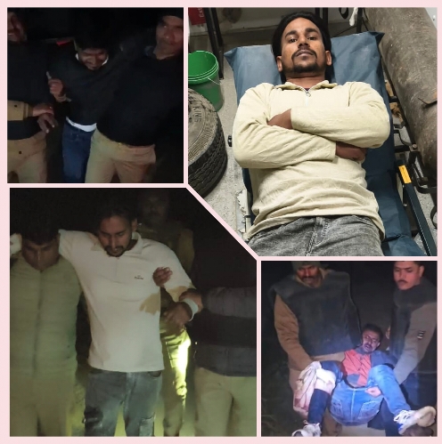 •चेकिंग के दौरान पकड़ी मोड़ से लगभग 300 मीटर आगे पकड़ीकला मार्ग पर एक मोटरसाइकिल तेज गति से आती हुई दिखाई दी। संदिग्ध प्रतीत होने पर पुलिस टीम द्वारा मोटरसाइकिल रोकने का इशारा किया गया, जिस पर चालक अचानक दिशा बदलकर भागने का प्रयास करने लगा और फिसलकर गिर पड़ा। गिरने के पश्चात अभियुक्त द्वारा पुलिस पार्टी पर जान से मारने की नीयत से फायर किया गया। आत्मरक्षार्थ थानाध्यक्ष द्वारा 01 राउंड फायर किया गया, जिससे अभियुक्त घायल हो गया। इसी दौरान अभियुक्त का एक अन्य साथी अंधेरे का लाभ उठाकर खेतों की ओर फरार हो गया। घायल अभियुक्त की पहचान एकरार पुत्र फिरोज, निवासी कस्बा देवगांव, थाना देवगांव, उम्र लगभग 24 वर्ष, को पुलिस हिरासत में लेकर उपचार हेतु अस्पताल भेजा गया।