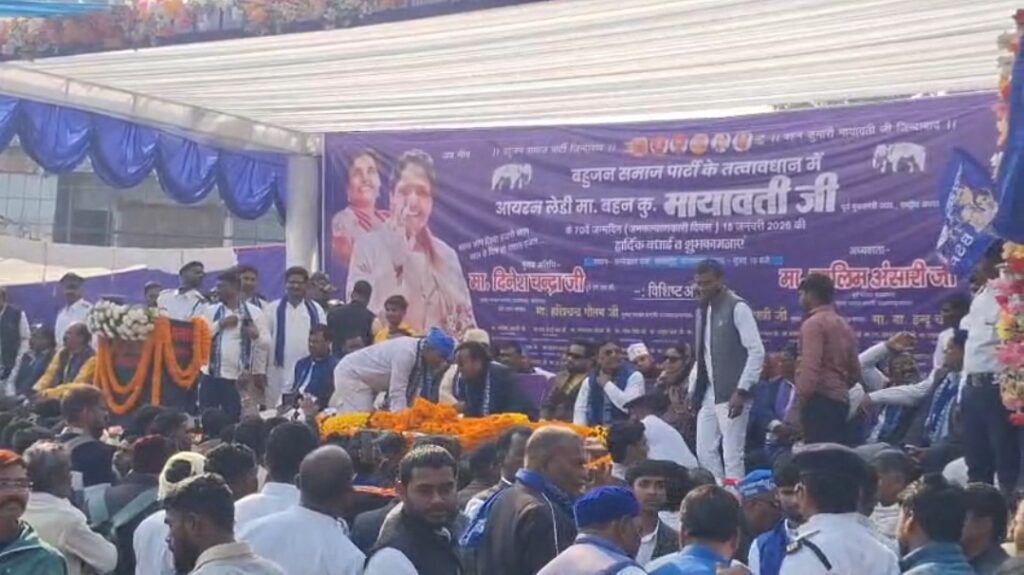 आजमगढ़: बहुजन समाज पार्टी द्वारा नगर के अम्बेडकर पार्क में पूर्व मुख्यमंत्री उत्तर प्रदेश एवं बसपा राष्ट्रीय अध्यक्ष मायावती का 70वां जन्मदिन मंडल स्तरीय स्तर पर जनकल्याण दिवस के रूप में मनाया। समारोह में मुख्य अतिथि के रूप में मुख्य मण्डल प्रभारी आजमगढ़ अयोध्या, देवी पाटन व पूर्व एमएलसी दिनेश चन्द्रा मौजूद रहे। वहीं अध्यक्षता मुख्य मंडल प्रभारी आजमगढ़ सालिम अंसारी व संचालन जिलाध्यक्ष आजमगढ़ अरविन्द कुमार ने किया। इस दौरान मुख्य अतिथि ने अबुल कैश आज़मी को विधानसभा चुनाव 2027 के लिए दीदारगंज विधानसभा सीट से प्रत्याशी घोषित किया।