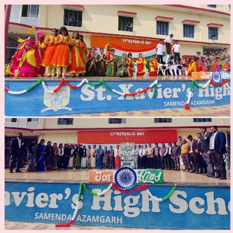 आजमगढ़: दिन सोमवार को सेंट जेवियर हाई स्कूल समेदा आजमगढ़ के प्रांगण में गणतंत्र दिवस बड़े ही धूमधाम से मनाया गया। विद्यालय के आवासीय प्रबंध निदेशक अनिरुद्ध जयसवाल जी प्रधानाचार्य विनंजय शर्मा जी,प्रधानाचार्या श्रीमती संगीता राय जी समन्वयक कुणाल गुप्ता आदि ने ध्वजारोहण कर तिरंगे को सलामी दिया एवं भारत माता के वीर सपूतों के चित्र पर माल्यार्पण करके कार्यक्रम का शुभारंभ किया। तत् पश्चात बच्चों ने विभिन्न सांस्कृतिक एवं रंगारंग कार्यक्रम प्रस्तुत कर उपस्थित जनों का मन मोह लिया।