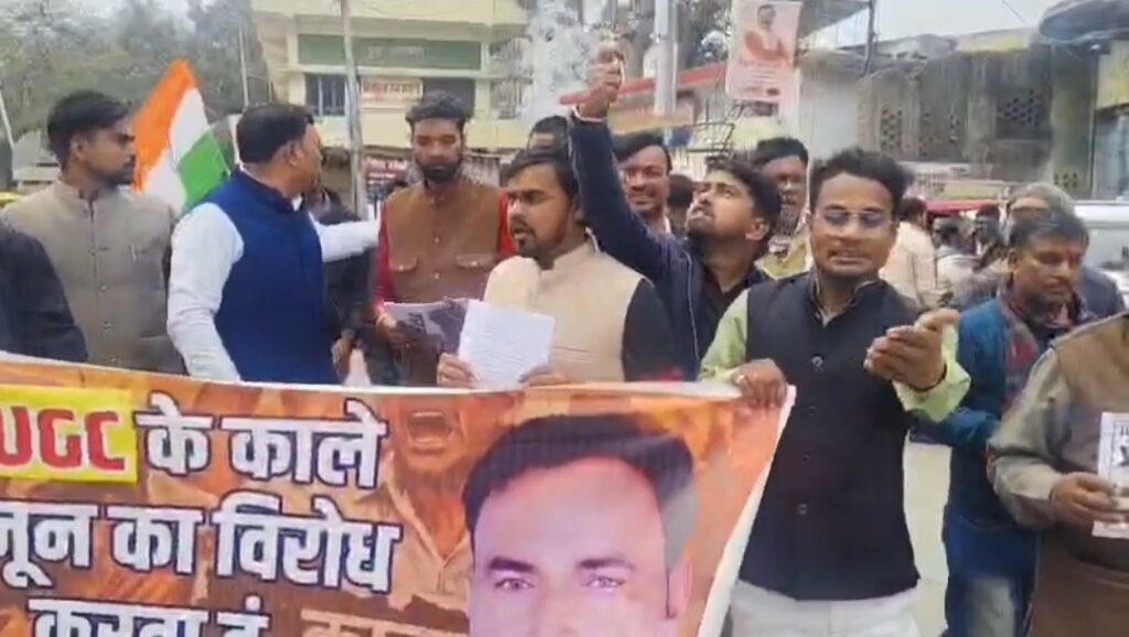 आजमगढ। विश्वविद्यालय अनुदान आयोग यानी यूजीसी द्वारा प्रस्तावित नए नियमों एवं बिल को लेकर सवर्ण आर्मी और रणवीर सेना ने मंगलवार को जिलाधिकारी कार्यालय पहुंचकर जबरदस्त प्रदर्शन किया। और सवर्ण छात्रों के हितों की रक्षा की मांग को लेकर राष्ट्रपति को संबोधित एक ज्ञापन जिलाधिकारी को सौंपा, जिसमें यूजीसी के प्रस्तावित नियमों को वापस लेने अथवा उनमें व्यापक संशोधन की मांग की गई।