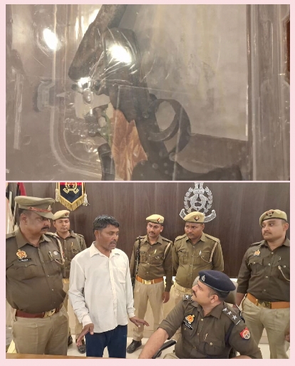 आजमगढ़: अतरौलिया थाना क्षेत्र के ग्राम भवानीपुर में एक छप्पर के अंदर अवैध असलहे बनाने की सूचना स्थानीय पुलिस को मिली। मौके पर छापा मारने पहुंची पुलिस को देख तीन लोग फरार होने लगे। एक आरोपी हत्थे चढ़ गया जबकि दो अन्य भागने में सफल रहे। पुलिस ने मौके से एक तमंच कारतूस के साथ ही दो अर्द्ध निर्मित तमंचा, ग्लैंडर मशीन, तमंचा बनाने की फैक्ट्री पर आरी ब्लेड, रेती, सरिया, छिन्नी, नाल, शुंभ, बोल्ट, सडसी, पंख, भट्टी, लोहे की पाइप, लोहे की पट्टी, हथौड़ा आदि बरामद किया गया। गिरफ्तार आरोपी का नाम विंध्याचल पुत्र स्व राधिका निवासी देवलपुर थाना राजेसुलतानपुर जिला अंबेडकरनगर है। फरार होने वालों में विरजा निवासी सहदेवगंज थाना महराजगंज और अंगद सिंह पुत्र नामवर सिंह निवासी भवानीपुर थाना अतरौलिया हैं।