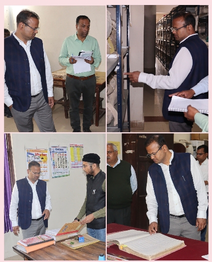 अभिलेखागार के निरीक्षण के दौरान जिलाधिकारी ने अभिलेखों के पुराने बस्ते को बदलकर नया करने, अभिलेखों को सुव्यवस्थित रखने एवं कार्यालय में नियिमत साफ-सफाई रखने के निर्देश संबंधित पटल सहायक को दिया।