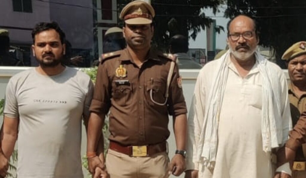 ग्राम भोगईचा स्थित जेठू सिंह स्मृति द्वार मोड़ से मुकदमा उपरोक्त में वांछित 02 अभियुक्तों 01. रामसकल पाण्डेय पुत्र स्व0 राजाराम पाण्डेय, निवासी ग्राम भोगईचा, थाना अहरौला,उम्र लगभग 56 वर्ष, 02. रवि पाण्डेय पुत्र रामसकल पाण्डेय निवासी ग्राम भोगईचा उम्र लगभग 27 वर्ष को गिरफ्तार किया गया। अन्य अग्रिम विधिक कार्यवाही प्रचलित है।