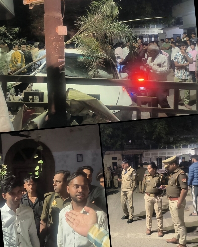 आजमगढ़ शहर कोतवाली क्षेत्र के बदरका मोहल्ले में तिराहे पर रविवार की रात करीब 10 बजे उस समय हंगामा मच गया जब एक कार अनियंत्रित होकर घर के बाउंड्री में घुस गई। घटना में कोई घायल तो नहीं हुआ। लेकिन बाउंड्री टूटने को लेकर हंगामा मच गया। कुछ ही देर में वहां पर दर्जनों की संख्या में भीड़ इकट्ठा हो गई। लोग कार चालक के खिलाफ आग बबूला हो गए। कार चौक के ही एक दुकानदार की बताई जा रही है। चालक ने स्टेरिंग जाम होने का हवाला दिया। लेकिन लोग उसको छोड़ने को तैयार नहीं थे। लोग चालक के नशे में होने का आरोप लगा रहे थे। कार भी क्षतिग्रस्त हो गई थी। लोग काफी आक्रोशित थे। इसी दौरान कार मालिक दुकानदार का साथी वहां उसको बचाने गया तो उसको लोगों ने मारपीट दिया। इस दौरान बदरका की महिला चौकी प्रभारी भी मौजूद थी। लेकिन फोर्स नहीं होने के कारण वह बेबस दिखाई दी। लोग नुकसान की भरपाई की तत्काल मांग कर रहे थे। हालांकि कार चालक बहुत ज्यादा मांग होने की चलते उसका आधा ही देने की गुहार लगा रहा था। इसके कारण वहां पर काफी देर तक बहस होती रही। लोगों का हुजूम इकट्ठा रहा। बड़ी मुश्किल से महिला दरोगा ने मामला शांत कराया और नुकसान की भरपाई को लेकर समझौते के बाद लोग वापस लौटे। लेकिन जिस प्रकार से कार अनियंत्रित हुई थी उसकी चपेट में कोई नहीं आया यह गनीमत की बात थी। अन्यथा बड़ी घटना से इंकार नहीं किया जा सकता था।