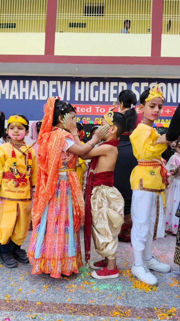कृष्ण राधा के वेशभूषा में बच्चों ने जमकर फूल एवं अबीर गुलाल की होली खेली ।