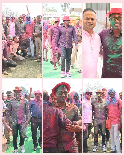 आजमगढ़: जनपद में होली पर्व को शांतिपूर्ण एवं सकुशल सम्पन्न कराने के उपरांत पुलिस लाइन आजमगढ़ में पारंपरिक रूप से हर्षोल्लास के साथ होली उत्सव मनाया गया। पुलिस उप-महानिरीक्षक आजमगढ़ परिक्षेत्र सुनील कुमार सिंह, जिलाधिकारी आजमगढ़ रविन्द्र कुमार एवं वरिष्ठ पुलिस अधीक्षक आजमगढ़ डॉ० अनिल कुमार द्वारा पुलिस अधिकारियों एवं कर्मचारियों के साथ होली उत्सव में सहभागिता की गयी। इस अवसर पर अधिकारी एवं कर्मचारी रंग, अबीर एवं गुलाल में सराबोर होकर एक-दूसरे को होली की शुभकामनाएँ देते हुए आपसी भाईचारे, प्रेम एवं सौहार्द्र का संदेश देते हुए उत्सव में शामिल हुए। कार्यक्रम के दौरान संगीत, लोकगीत एवं नृत्य का आकर्षक संगम देखने को मिला, जिसमें पुलिसकर्मियों ने उत्साहपूर्वक भाग लेकर वातावरण को उल्लासपूर्ण बना दिया। वरिष्ठ पुलिस अधीक्षक आजमगढ़ द्वारा होली पर्व के दौरान जनपद में कानून-व्यवस्था बनाए रखने हेतु पुलिसकर्मियों द्वारा किए गए सराहनीय कार्यों की प्रशंसा की गई। उन्होंने कहा कि होली प्रेम, भाईचारे एवं सामाजिक समरसता का प्रतीक पर्व है, जो समाज में आपसी सद्भाव और एकता को सुदृढ़ करने का संदेश देता है। इस अवसर पर सभी पुलिस अधिकारियों, कर्मचारियों एवं उनके परिवारजनों को होली पर्व की हार्दिक शुभकामनाएँ देते हुए उनके सुख, समृद्धि एवं उत्तम स्वास्थ्य की कामना की गई। आज दिनांक 05.03.2026 को जनपद आजमगढ़ में होली पर्व को शांतिपूर्ण एवं सकुशल सम्पन्न कराने के उपरांत वरिष्ठ पुलिस अधीक्षक आजमगढ़ के नेतृत्व में पुलिस लाइन आजमगढ़ में पुलिस अधिकारियों एवं कर्मचारियों द्वारा पारंपरिक रूप से हर्षोल्लास के साथ होली उत्सव मनाया गया। इस अवसर पर अधिकारी व कर्मचारी रंग, अबीर एवं गुलाल में सराबोर होकर एक-दूसरे को रंग लगाते हुए प्रेम, सौहार्द्र एवं भाईचारे का संदेश देते नजर आए। कार्यक्रम के दौरान संगीत, लोकगीत एवं नृत्य का आकर्षक आयोजन भी किया गया, जिसमें पुलिसकर्मियों ने उत्साहपूर्वक भाग लिया और वातावरण को उल्लासपूर्ण बना दिया।
