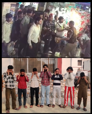 आजमगढ़: बता दें कि 03 मार्च को थाना कोतवाली क्षेत्रान्तर्गत तकिया क्षेत्र में होलिका जुलूस के दौरान कुछ अराजकतत्वों द्वारा अपनी बेल्ट निकालकर हंगामा करते हुए शान्ति व्यवस्था भंग करने का प्रयास किया गया था, जिसका एक वीडियो सोशल मीडिया पर संज्ञान में आया था। उक्त वीडियो एवं फोटोग्राफ का गहन अवलोकन कर संबंधित अराजकतत्वों की पहचान की जा रही थी। थाना कोतवाली पुलिस द्वारा कार्रवाई करते हुए जुलूस के दौरान शान्ति व्यवस्था भंग करने का प्रयास करने वाले 07 अराजकतत्वों को चिन्हित कर हिरासत में लिया गया तथा उनके विरुद्ध आवश्यक विधिक कार्यवाही करते हुए न्यायालय के समक्ष प्रस्तुत किया जा रहा है।