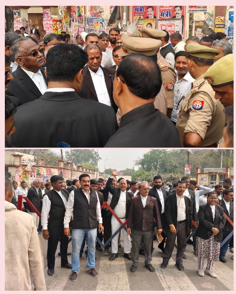 आजमगढ़: गुंडा टैक्स न देने पर मनबढ़ो द्वारा अधिवक्ता की घर की दीवाल गिरा देने से नाराज दीवानी कचहरी के अधिवक्ता आरोपियों की गिरफ्तारी की मांग को लेकर मंगलवार को पूरे दिन न्यायिक कार्य से विरत रहे। नाराज अधिकताओं ने आधे घंटे तक गिरजाघर चौराहे पर चक्का जाम भी किया। इस संबंध में दीवानी न्यायालय अभिभाषक संघ की साधारण सभा की बैठक हुई बैठक की अध्यक्षता संघ की अध्यक्ष प्रभाकर सिंह ने तथा संचालन मंत्री अनुराग कुमार दीक्षित एडवोकेट ने किया। बैठक में सिधारी थाना क्षेत्र के रामपुर माफी गांव में अधिवक्ता हरिनारायण पांडे से दो लाख रुपये गुंडा टैक्स मांगे जाने तथा गुंडा टैक्स न न देने पर अधिवक्ता के निर्माणाधीन मकान की दीवाल को गिरा देने की घटना की कड़ी निंदा की गई। साथी अधिवक्ताओं ने आरोपियों की तत्काल गिरफ्तारी की मांग की।नाराज अधिवक्ताओं ने नारेबाजी करते हुए गिरिजाघर चौराहे पर चक्का जाम भी किया।जाम की सूचना मिलते ही शहर कोतवाल यादवेन्द्र पांडेय मौके पर पहुंचे और अधिवक्ताओं को कार्यवाही का आश्वासन दिया। चक्का जाम करने वालों में पूर्व अध्यक्ष दयाराम यादव ओम प्रकाश मिश्रा पूर्व मंत्री अनिल कुमार सिंह, अरूणेंद्र कुमार सिंह उर्फ बब्बन,अशोक कुमार पांडेय आदि बहुत से अधिवक्ता शामिल रहे।