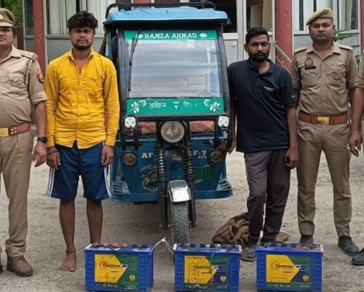 पुलिस टीम ने मुखबिर की सूचना पर होमगार्ड ग्राउंड के पास वन विभाग डिपो के निकट से श्याम सुन्दर गौड़ उर्फ शिन्टू 32 साल और मंगरु चौधरी 25 साल निवासी पल्हनी, थाना सिधारी को गिरफ्तार किया। पूछताछ में दोनों अभियुक्तों ने बताया कि उन्होंने 20 मार्च की रात अपने एक साथी सुनील यादव के साथ मिलकर रेलवे स्टेशन आजमगढ़ से ई-रिक्शा चोरी की थी और बैटरियों को अलग-अलग बेचकर पैसे बांटने की योजना बना रहे थे। पुलिस को देखते ही उन्होंने भागने का प्रयास किया, लेकिन मौके पर ही पकड़ लिए गए, जबकि उनका एक साथी फरार हो गया।