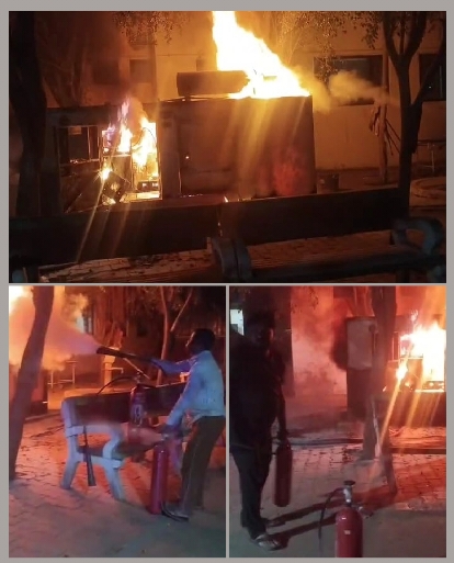 आजमगढ़: अतरौलिया में अमर शहीद राजा जयलाल सिंह 100 शैया संयुक्त जिला चिकित्सालय में मंगलवार देर रात उस समय हड़कंप मच गया, जब परिसर में लगे बंद जनरेटर में अचानक आग लग गई। आग की लपटें इतनी तेज थीं कि आसपास के पेड़-पौधे भी झुलस गए, जिससे अस्पताल परिसर में अफरा-तफरी का माहौल बन गया। घटना रात्रि करीब 11 बजे की बताई जा रही है। आग लगते ही अस्पताल के चौकीदारों ने तत्काल फायर सर्विस और स्थानीय पुलिस को सूचना दी। सूचना मिलते ही दमकल की तीन गाड़ियां मौके पर पहुंचीं, लेकिन तब तक अस्पताल कर्मचारियों ने कड़ी मशक्कत कर आग पर काफी हद तक काबू पा लिया था।