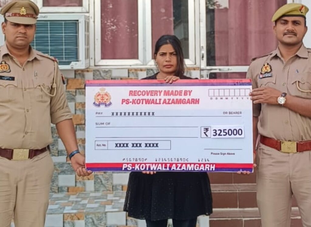 आजमगढ़, 09 अप्रैल 2026। जनपद के कोतवाली थाना क्षेत्र में साइबर फ्रॉड के एक मामले का सफल अनावरण करते हुए पुलिस ने सराहनीय कार्य किया है। एटीएम कार्ड और यूपीआई के दुरुपयोग से ठगी गई ₹3,25,000 की पूरी धनराशि पुलिस टीम द्वारा वापस करा दी गई है।