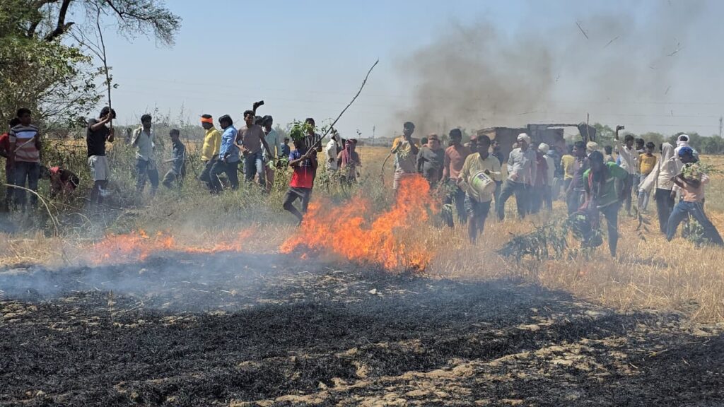आजमगढ़: अतरौलिया थाना क्षेत्र के लोहरा व तेजापुर गांव के सिवान में दिन में लगभग 1:00 बजे गेहूं की खेत में अचानक आग लग गई। पछुवाँ हवा के कारण आग ने विकराल रूप ले लिया और तेजी से भरसानी गांव की तरफ बढ़ने लगी। आग की सूचना मिलते ही आसपास के गांव के सैकड़ो लोग इकट्ठा होकर आग बुझाने में जुट गए। स्थानीय ट्रैक्टर चालक सोनू व नागेंद्र ने अपनी जान की परवाह किए बिना आग की लपटों में ट्रैक्टर लेकर कूद पड़े और जुताई कर आग को गांव की तरफ बढ़ने से रोका। ग्रामीणों ने बताया कि दमकल व पुलिस को सूचना देने के बाद भी कोई समय पर नहीं पहुंचा, ग्रामीणों ने इसकी सूचना डायल 112 नंबर पुलिस को भी दिया ग्रामीणों की मदद से किसी तरह आग पर काबू पाया गया तब तक कई किसानों का नुकसान हो चुका था। स्थानीय किसान ओमप्रकाश श्रीवास्तव ने बताया कि मेरा 5 बीघा खेत काटकर खेत में ही पड़ा था जो जलकर बर्बाद हो गया, जिसमें 70 से 80 हजार रुपए का नुकसान हुआ है। घर में खाने व पशुओं के चारा की किल्लत हो गई ।वही आग की चपेट में आए अन्य खेतों में नरेंद्र यादव तेजापुर ढाई बीघा ,सुरेंद्र यादव ढाई बीघा, सतीश पाठक डेढ़ बीघा, सोनी यादव डेढ़ बीघा समेत लगभग दो दर्जन से अधिक खेत में पड़े फसल अवशेष (भूसा) आग की चपेट में आ गए, गलीमत रही की इन किसानों का खेत कट चुका था केवल फसल अवशेष (भूसा) जलने से नुकसान हुआ है। आग बुझाने के बाद पुलिस व दमकल की गाड़ियां पहुंची लेकिन खेतों तक नहीं पहुंची जिससे स्थानीय ग्रामीणों में काफी नाराजगी देखी गई। लेखपाल सुनील मिश्रा ने बताया कि तेजपुर और लोहार के लेखपाल मौके पर पहुंचे लगभग 10 विभाग से ऊपर खेत जले हैं जिसमें केवल फसल अवशेष भूसा ही पड़े थे अनाज नहीं था एक लोहार निवासी व्यक्ति के अनाज जलने की सूचना है आकलन किया जा रहा है नुकसान की रिपोर्ट यूपी जिला अधिकारी महोदय को भेजी जाएगी। फायर ब्रिगेड कर्मी चालक राम प्रसाद ने बताया कि अतरौलिया क्षेत्र में दो जगह आग लगने की सूचना प्राप्त हुई थी, पहली सूचना 11:00 और दूसरी सूचना 1:10 पर मिली है। सूचना मिलने के बाद अपनी क्षमता के मुताबिक गाड़ी घटना स्थल पर पहुंचती है। रास्ता व ट्रैफिक की वजह से लेट हो सकता है। सूचना मिलते ही गाड़ी तुरंत घटना स्थल के लिए रवाना हो जाती है गाड़ी को रोड से खेत में उतारने पर पलटने का डर रहता है।