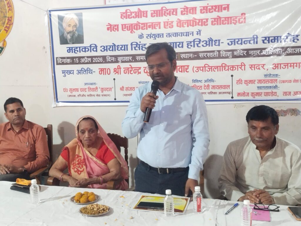 इस अवसर पर अपने संबोधन में एसडीएम नरेन्द्र कुमार गंगवार ने कहा कि महाकवि हरिऔध ने खड़ी बोली में प्रथम महाकाव्य ‘प्रिय प्रवास’ की रचना कर न केवल हिंदी साहित्य को समृद्ध किया, बल्कि आजमगढ़ का नाम भी राष्ट्रीय स्तर पर गौरवान्वित किया। उन्होंने कहा कि हरिऔध की रचनाएं साहित्य जगत में अद्वितीय स्थान रखती हैं और आने वाली पीढ़ियों के लिए प्रेरणा का स्रोत हैं।