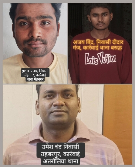 आजमगढ़। जनपद में महिलाओं के खिलाफ बढ़ते अपराधों पर सख्त रुख अपनाते हुए पुलिस ने अलग-अलग थाना क्षेत्रों में बड़ी कार्रवाई करते हुए तीन आरोपियों को गिरफ्तार किया है। इन मामलों में दहेज उत्पीड़न, दुष्कर्म, मारपीट और सोशल मीडिया पर अश्लील फोटो वायरल करने जैसे गंभीर आरोप शामिल हैं। पुलिस की इस कार्रवाई को महिला सुरक्षा के लिहाज से अहम कदम माना जा रहा है।