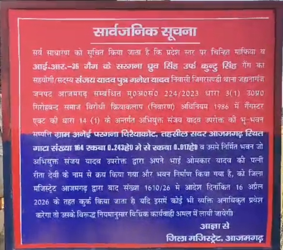 थाना जहानागंज पुलिस ने जांच के बाद रिपोर्ट जिला मजिस्ट्रेट को भेजी थी। डीएम के आदेश (दिनांक 16 अप्रैल 2026) के अनुपालन में 19 अप्रैल को तहसीलदार विवेकानंद दूबे, क्षेत्राधिकारी सदर आस्था जायसवाल, लेखपाल और पुलिस टीम की मौजूदगी में संपत्ति कुर्क की गई।