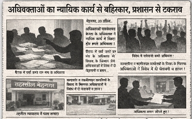 मेहनगर (आजमगढ़), 20 अप्रैल 2026: तहसील बार एसोसिएशन मेहनगर के अधिवक्ताओं ने न्यायिक कार्य से विरत रहने का बड़ा निर्णय लिया है। सोमवार को आयोजित आवश्यक बैठक में यह फैसला सर्वसम्मति से लिया गया, जिससे तहसील न्यायालयों का कामकाज प्रभावित होने की संभावना है।
