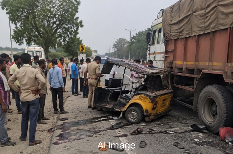 आजमगढ़ जिले के देवगांव थाना क्षेत्र में एक दर्दनाक सड़क हादसा सामने आया, जिसने पूरे इलाके को शोक में डुबो दिया। आजमगढ़-वाराणसी मार्ग पर डीपीएस स्कूल के पास सोमवार रात में एक तेज रफ्तार ट्रक ने पीछे से ऑटो रिक्शा को जोरदार टक्कर मार दी। टक्कर इतनी भीषण थी कि ऑटो अनियंत्रित होकर सड़क किनारे खड़े दूसरे ट्रक में जा घुसा।