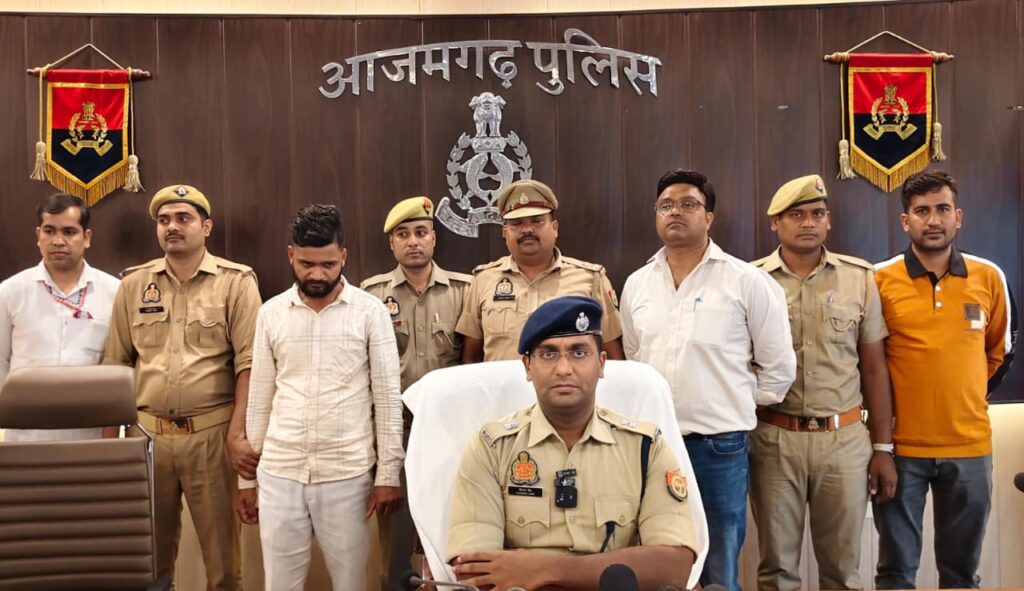 आजमगढ़: थाना साइबर क्राइम जनपद आजमगढ़ पुलिस द्वारा पुलिस अधीक्षक के फर्जी हस्ताक्षर व मोहर व थाना मेहनगर की फर्जी मोहर से कूटरचित नोटिस धारा 41(1) Cr.PC तैयार ठगी करने वाले अभियुक्त की गिरफ्तारी की गयी है। आवेदक गुलाबचन्द पुत्र संगति ग्राम ठोठीया थाना मेहनगर द्वारा पुलिस अधीक्षक को प्रा0पत्र दिया गया कि दि0 05.10.2025 को प्रार्थी व प्रार्थी के भाईयों सुबाषचन्द व सतीशचन्द को डाक से नोटिस प्राप्त हुई कि सन्तोष पुत्र वंशु व सुनील पुत्र लालमनि कश्यप के प्रार्थना पत्र के आधार पर धारा 318(4), 319(2), 338, 336(3), 340(2), 352, 351(2) BNS व 66D IT ACT 2008 पंजीकृत है। जिसमे पुलिस अधीक्षक आजमगढ़ के समक्ष उपस्थित होकर स्थिति स्पष्ट करें नहीं तो गिरफ्तारी की जायेगी । नोटिस के नीचे पुलिस अधीक्षक आजमगढ़ के हस्ताक्षर व मोहर तथा थाना मेंहनगर की मोहर व अंकित तिवारी लिखा था। प्रार्थी के मोबाइल पर 22492.30 रू जमा करने का ओटीपी भेजने पर प्राप्त शिकायत के आधार पर लोकेशन व मुखबिर की सूचना पर थाना साइबर क्राइम जनपद आजमगढ़ के प्रभारी निरीक्षक द्वारा अभियुक्त को उसकी दुकान फिनो पेमेंट बैंक गोसाई बाजार से गिरफ्तार किया गया।
