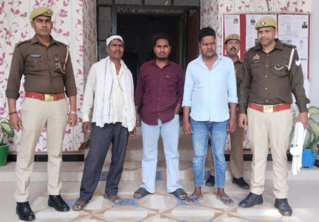 आजमगढ़: 4 नवंबर को वादी विपिन पुत्र स्व0 स्वामीनाथ निवासी ग्राम हदिसा दयालपुर द्वारा थाना बरदह पर सूचना दी गई कि 08.00 बजे रात्रि में गांव के प्रभु राजभर, विशाल राजभर, धर्मेन्द्र राजभर एवं अन्य साथियों ने पुरानी रंजिश के चलते लाठी-डण्डे से वादी व उसके परिजनों पर जानलेवा हमला कर दिया, जिससे सभी को गंभीर चोटें आईं। धारा 109/115(2)/351(3)/352 बीएनएस पंजीकृत किया गया। उ0नि0 धर्मदेव यादव द्वारा मुखबिर की सूचना पर त्रिवेणी मोड़ से अभियुक्तगण प्रभु राजभर पुत्र शंकर, विशाल राजभर पुत्र प्रभु, और धर्मेन्द्र राजभर पुत्र करिया, निवासीगण ग्राम हदिसा दयालपुर थाना बरदह को गिरफ्तार किया गया।